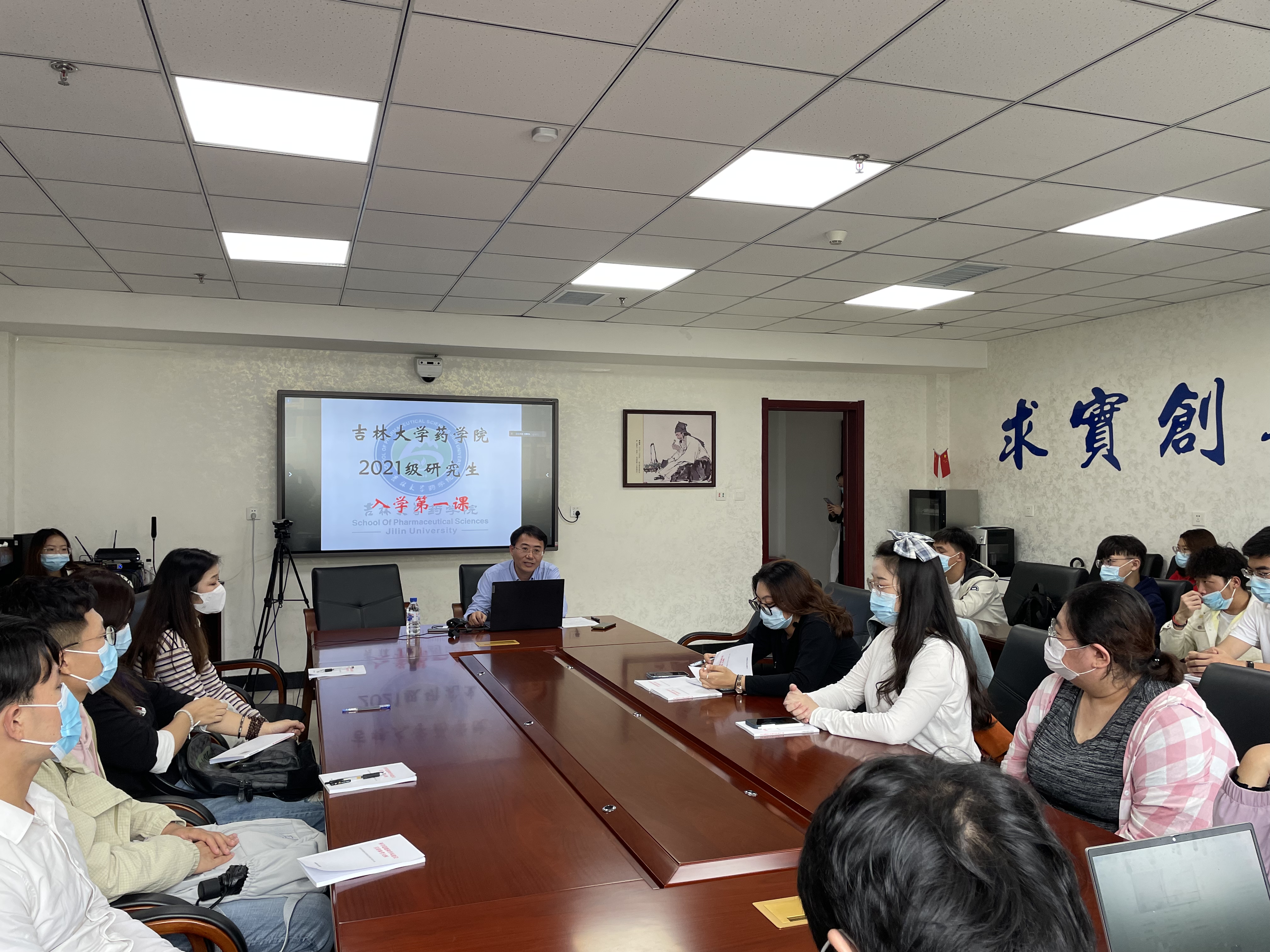 Professor Ma Jie, dean of the School of Pharmaceutical Sciences, started with a warm welcome to and sincere congratulations on the arrival of the 2021 class of graduate students. Mr. Ma then gave a detailed introduction of the history and outstanding talents of Jilin University as well as the School of Pharmaceutical Sciences. Mr. Ma asked all students three questions: What is the purpose of postgraduate study? What do you want to be in the future? To achieve your ideal goal, what should you do during postgraduate study? Taking Meng Wanzhou’s return to China as an example, Mr. Ma encouraged students to take on new missions in the new era and understand China’s real problems, be courageous, down-to-earth, innovative, and do academic research that is truly beneficial to our country, all families and the people.