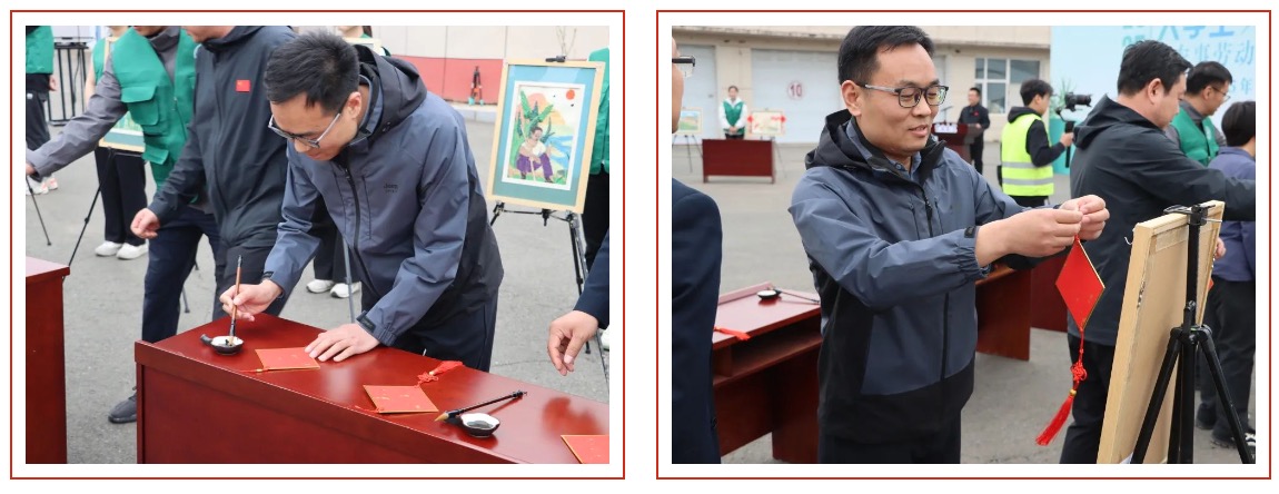 党委书记孙曙光与校领导们亲手撰写“丰”字,悬挂至各学院完成的种子画上,共同祝福2025年五谷“丰”登,“丰”衣足食,岁稔年“丰”。