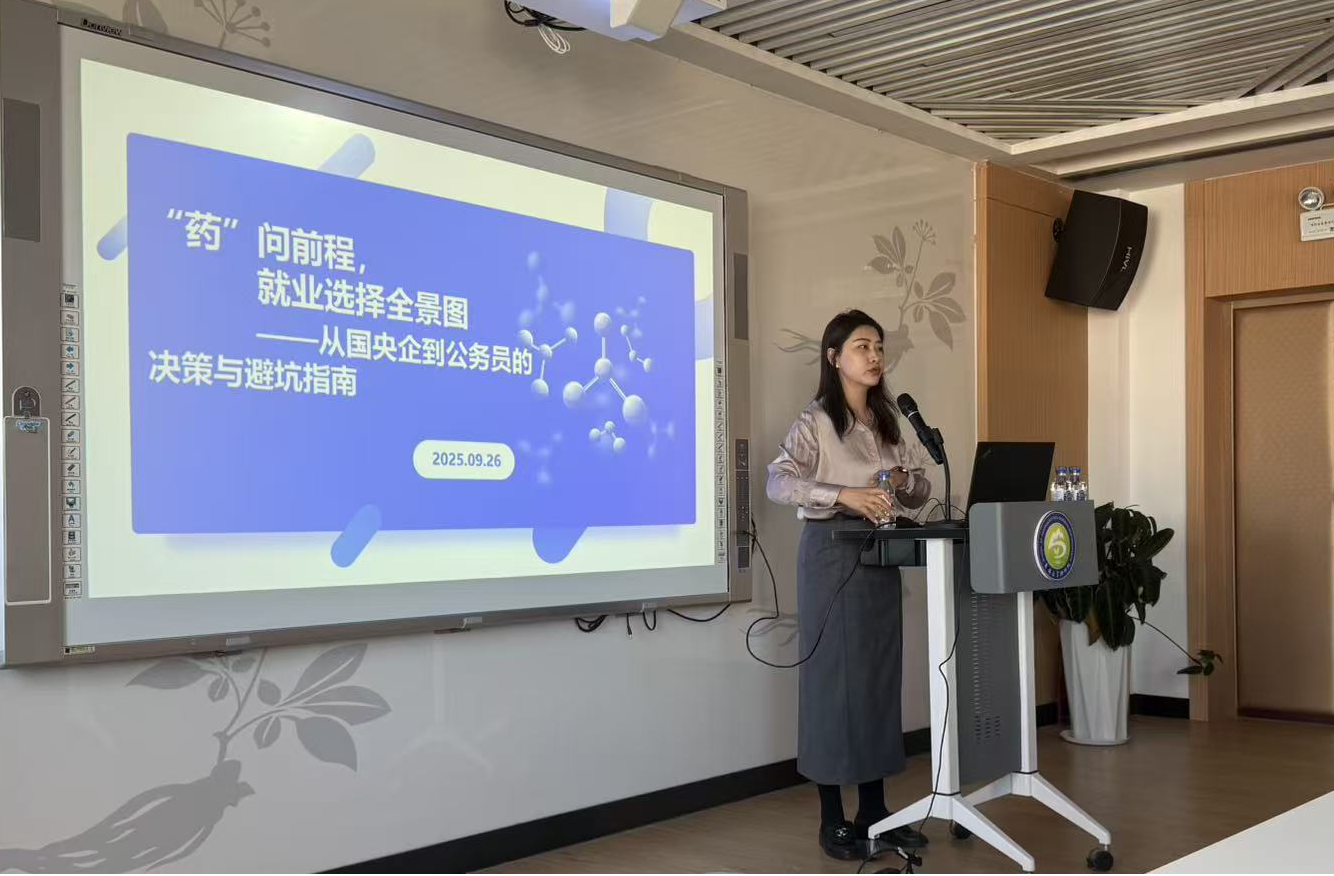 学生就业创业指导与服务中心指导科科长、就业创业指导教师孙卓,为全体毕业研究生作了题为“药问前程,就业选择全景图”的专题就业指导讲座。