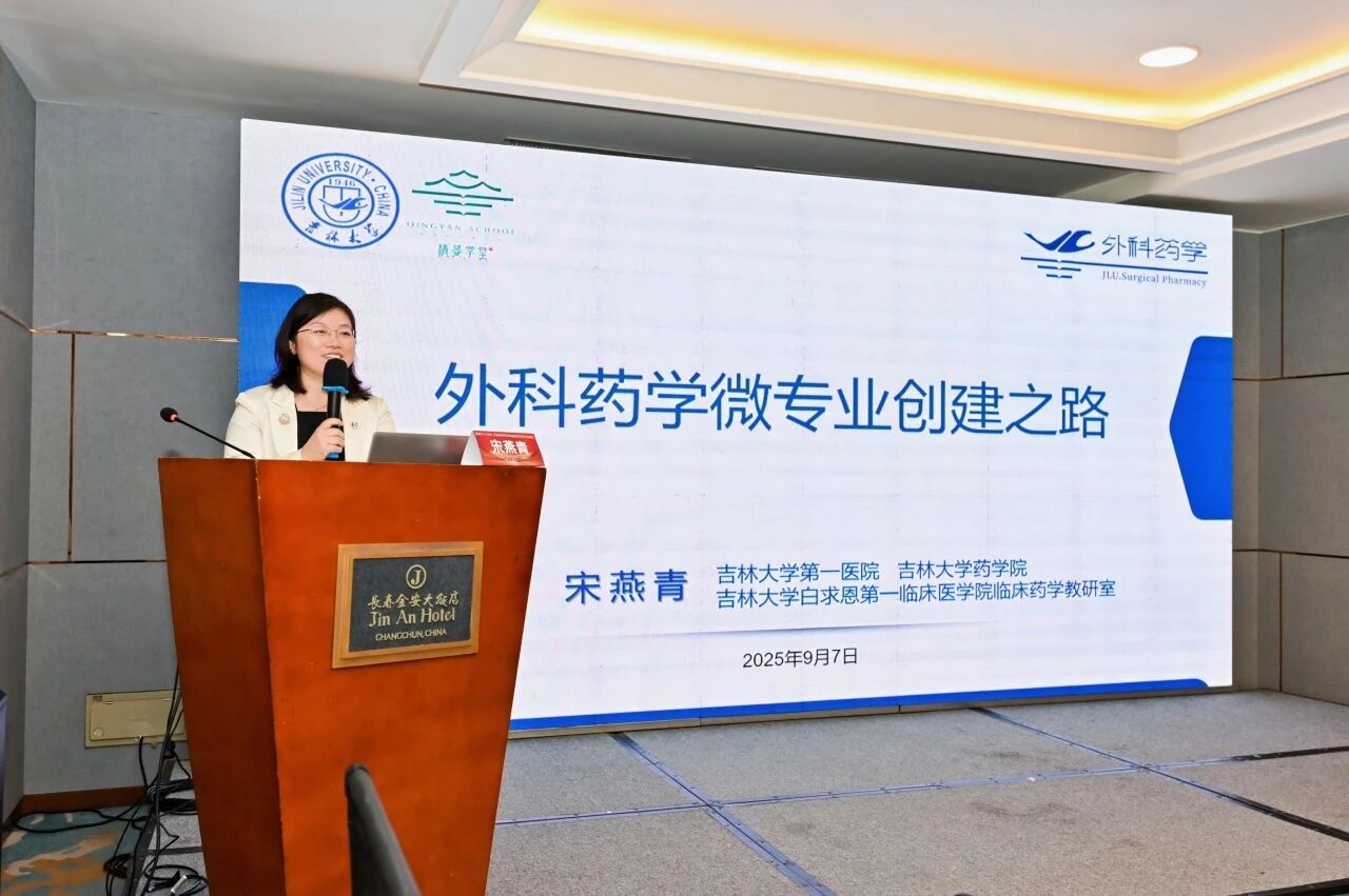 微专业创始人宋燕青副教授回顾了外科药学微专业从理念提出到落地实施的全过程。她表示,该专业整合药学与临床医学资源,构建了理论实践并重的课程体系,组建了跨学科、高水平的师资团队,为学员提供了系统而深入的学习体验。她也对各方支持表示衷心感谢,并对专业未来的优化与扩展提出展望。
