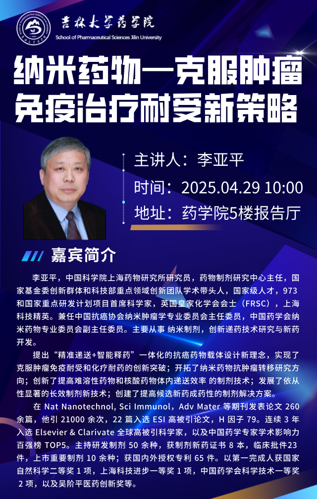 “药苑名家”系列讲座(第1讲)——纳米药物-克服肿瘤免疫治疗耐受新策略