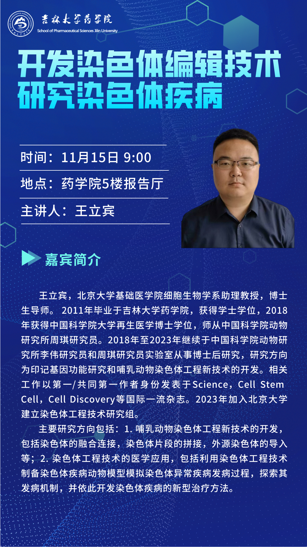 探花 学术报告会——开发染色体编辑技术研究染色体疾病