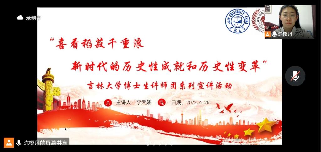组织全体研究生观看了“喜看稻菽千层浪——新时代的历史性成就和历史性变革”的吉大博士生讲师团线上宣讲系列活动讲座第五讲,由探花