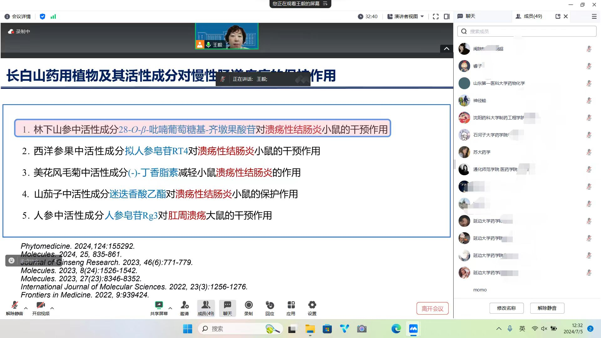 加强研究生招生宣传工作实施方案》,进一步拓展研究生生源渠道,鼓励更多优秀学子通过保研或统考等方式报考我院,高效推进研究生招生宣传,保证研究生生源质量,我院利用2024年7月5日的午休时间,组织大连理工大学、沈阳药科大学、延边大学、石河子大学、苏州大学、山东第一医科大学、海南大学、广西大学、江西中医药大学、桂林医学院、长春中医药大学等近二十余所大学的学生举行了研究生招生(线上)宣讲会。
