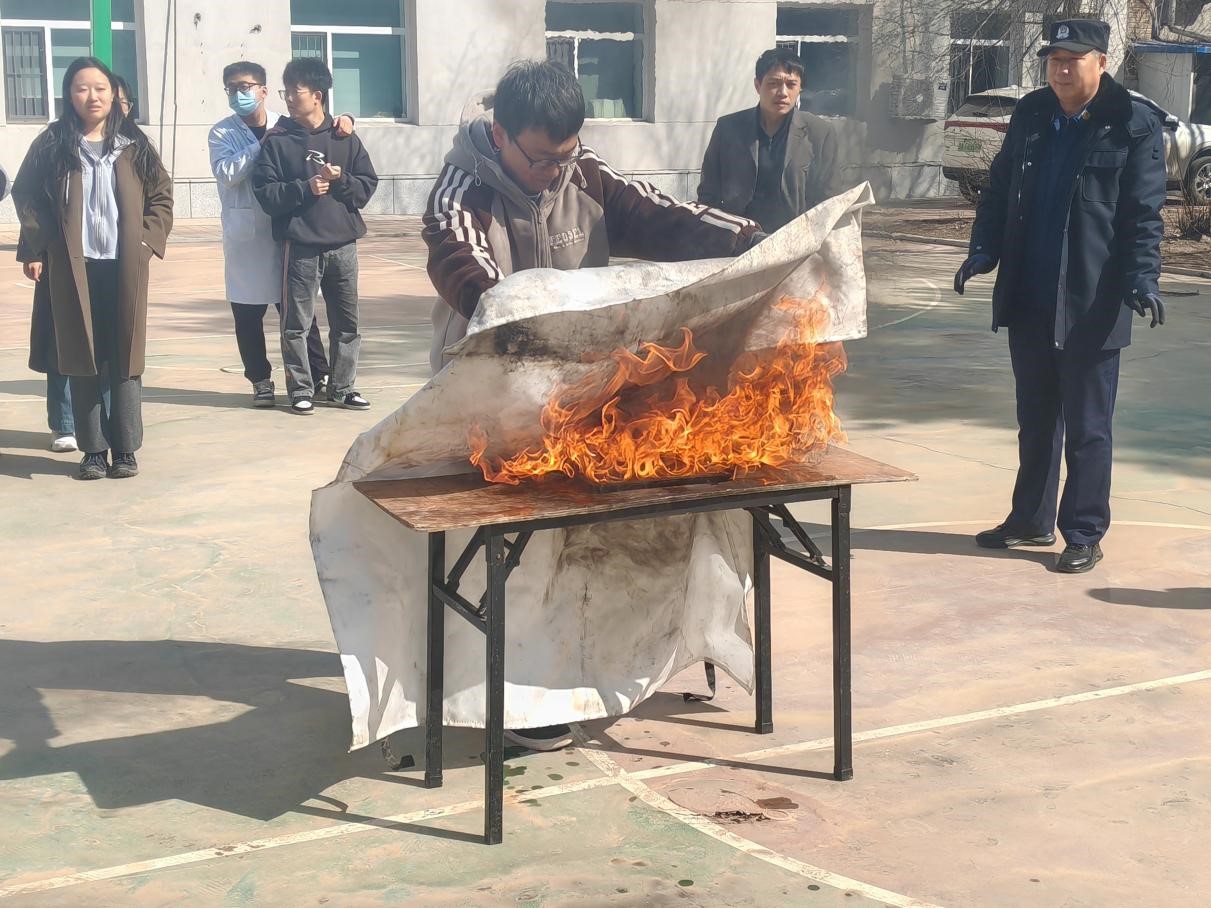 实验楼突发火灾为模拟场景。为确保此次演练的顺利进行,学院精心部署疏散演练方案,仔细检查楼内消防设施,确保各楼层安全出口畅通。随着消防警报的拉响,演练正式开始,学院师生在工作人员的引导下按照预先制定的疏散路线迅速、有序地撤离至安全区域。随后,大家前往指定地点开展灭火演练。安志成详细讲解了火灾逃生技巧、灭火器与灭火毯的使用方法,现场师生亲自动手进行灭火实操。演练结束后,安志成对学院师生积极参与配合此次演练给予了充分地肯定与赞扬,并就演练过程中出现的一些问题和不足,提出了相应的改进建议。