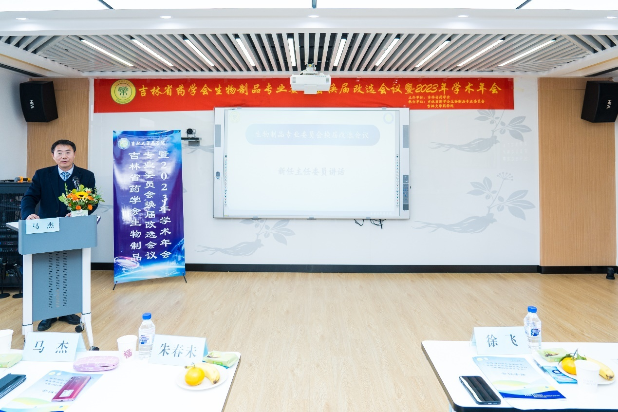 院长马杰作为新任主任委员进行表态发言。他表示感谢参会的领导、上一届专委会、各位委员对本次换届的支持和帮助,希望本届生物制品专业委员会的专家、学者、企业家及药学管理人员能够共同努力,发挥在学术上、技术上、管理上的优势,整合资源,开展学术交流和技术合作,在上一届专委会工作的基础上,发挥更大的作用,为促进我省生物制品专业水平的提升和医药产业的快速发展贡献力量。