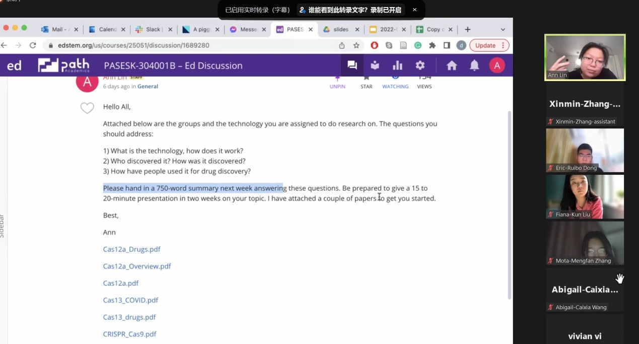 2022年暑期“吉大药学学子全球胜任力提升课程”现已顺利结课。同学们表示通过这种互动性非常强的全英课程学习,大大提升了课堂参与度,不仅拓展了国际视野,而且提高了利用英文进行学术交流的能力;此次课程也为我院青年教师与外国学术大师提供了交流平台,提升了学术创新能力和教学理念,并为我院青年教师开展双语教学及全英授课奠定基础。