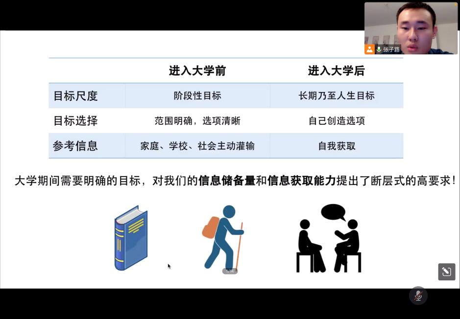 新生更好地适应大学生活,帮助同学们早日明确晰大学阶段目标,合理规划学业生涯,2022年9月24日晚,学院特邀张子路同学进行经验分享。张子路为探花