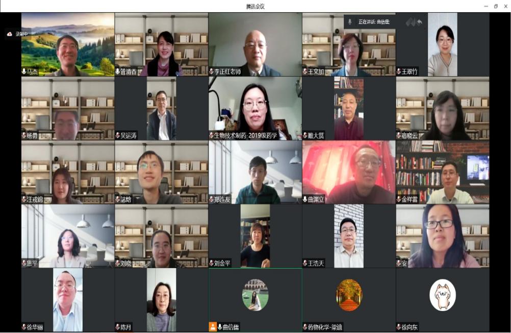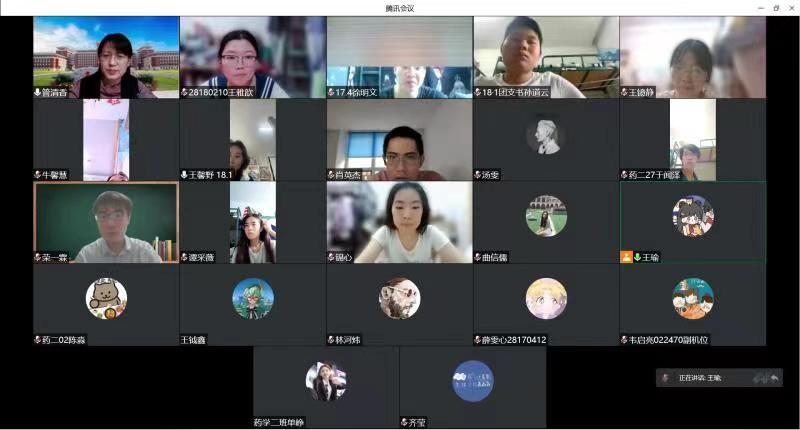 学院严格按照教育部推进高校课程思政建设的相关要求,督促在线教学授课教师切实落实课程思政建设。课前需有5分钟防疫精神宣讲,将疫情“危机”转化为思政教学“契机”。为了鼓励学生积极面对抗疫,安心学习,药物化学教研室采取多种形式进行宣传教育。徐国兴主任利用歌曲、魔术、二人转等视频进行抗疫必胜宣传;周小平老师在课前抗疫宣传中,采用更贴近学生自身的内容,并与学生互动,通过弹幕共同为探花