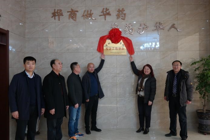与吉林省华药生物有限公司校企合作揭牌仪式。参加揭牌仪式的领导还有桦甸市政府经济开发区管委会周斌副主任,招商局王旭阳局长。