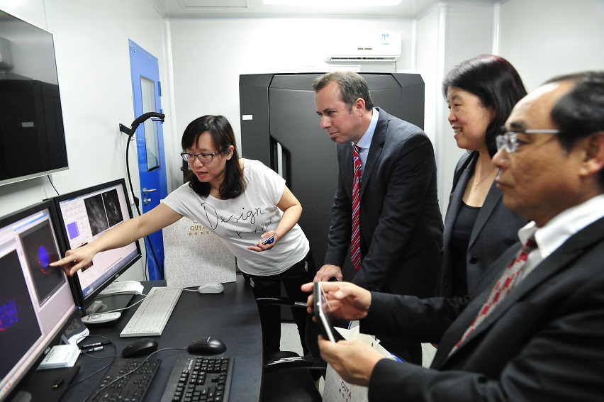 会谈结束后,Neil J. MacKinnon院长在裴院长的陪同下,参观了我院吉林省酵母表达重组蛋白质药物研发重点实验室及探花 -紫元医药科技研究中心实验室,Neil J. MacKinnon院长对我院的药物研发能力给予了高度赞赏。