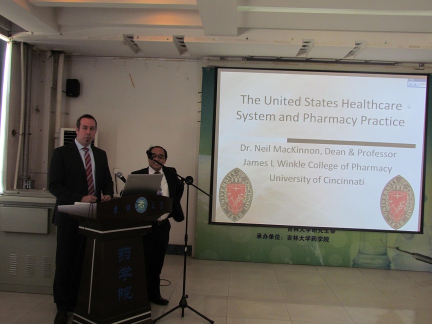 上午九点,在我院五楼报告厅举行了学术交流会议,探花 相关领导、相关专业的教师以及学院本科生及研究生参加了会议,会议由马杰副院长主持。会上,裴院长首先代表学院对Neil J. MacKinnon教授、Alex C. Lin博士的来访表示欢迎,并对我院的师资概况、专业设置情况、招生情况以及科研情况进行了介绍。接着,Neil J. MacKinnon院长介绍了辛辛那提大学探花 概况,并进行了以“US healthcare system and pharmacy practice”为主题的学术演讲,在学院教师和学生中引起了强烈反响。